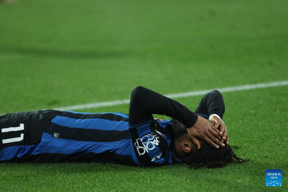 Atalanta's Ademola Lookman reacts during the UEFA Champions League match between Atalanta and Real Madrid in Bergamo, Italy, Dec. 10, 2024. (Xinhua/Li Jing)