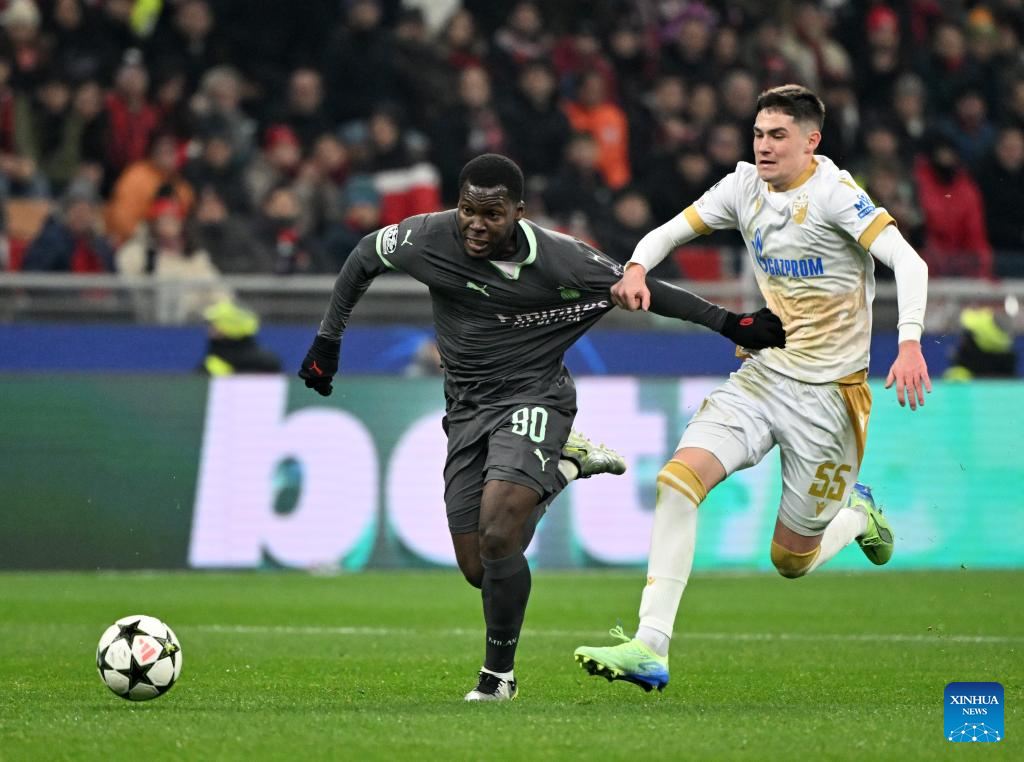 Cherif Ndiaye during the UEFA Champions League match between AC Milan and Crvena Zvezda in Milan, Italy, Dec. 11, 2024. (Photo by Alberto Lingria/Xinhua)