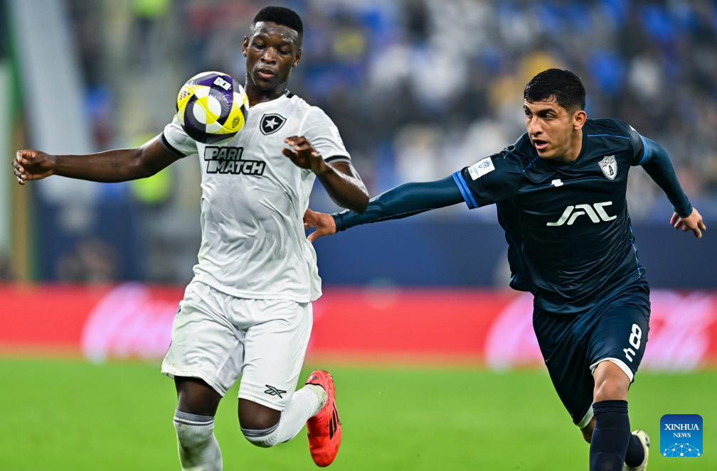 Bryan Gonzalez (R) of CF Pachuca vies with Luiz Henrique of Botafogo during the FIFA Intercontinental Cup match between Brazil's Botafogo and Mexico's CF Pachuca in Doha, Qatar on Dec. 11, 2024. (Photo by Nikku/Xinhua)