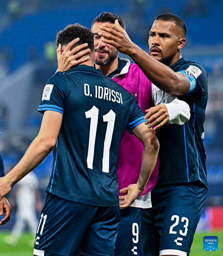 Oussama Idrissi (L) of CF Pachuca celebrates after scoring during the FIFA Intercontinental Cup match between Brazil's Botafogo and Mexico's CF Pachuca in Doha, Qatar on Dec. 11, 2024. (Photo by Nikku/Xinhua)