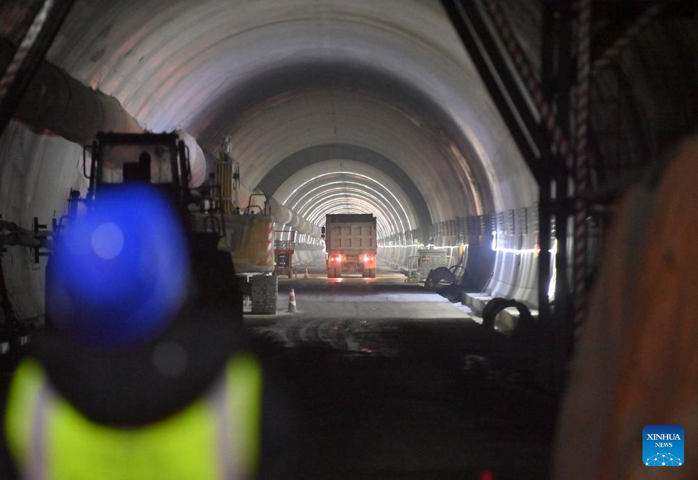 A truck is pictured at the construction site of an expressway linking Yufeng and Yizhou in south China's Guangxi Zhuang Autonomous Region, Dec. 10, 2024. (Xinhua/Huang Xiaobang)