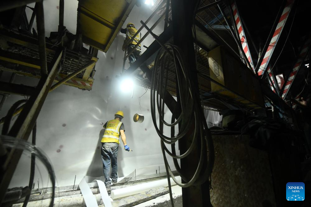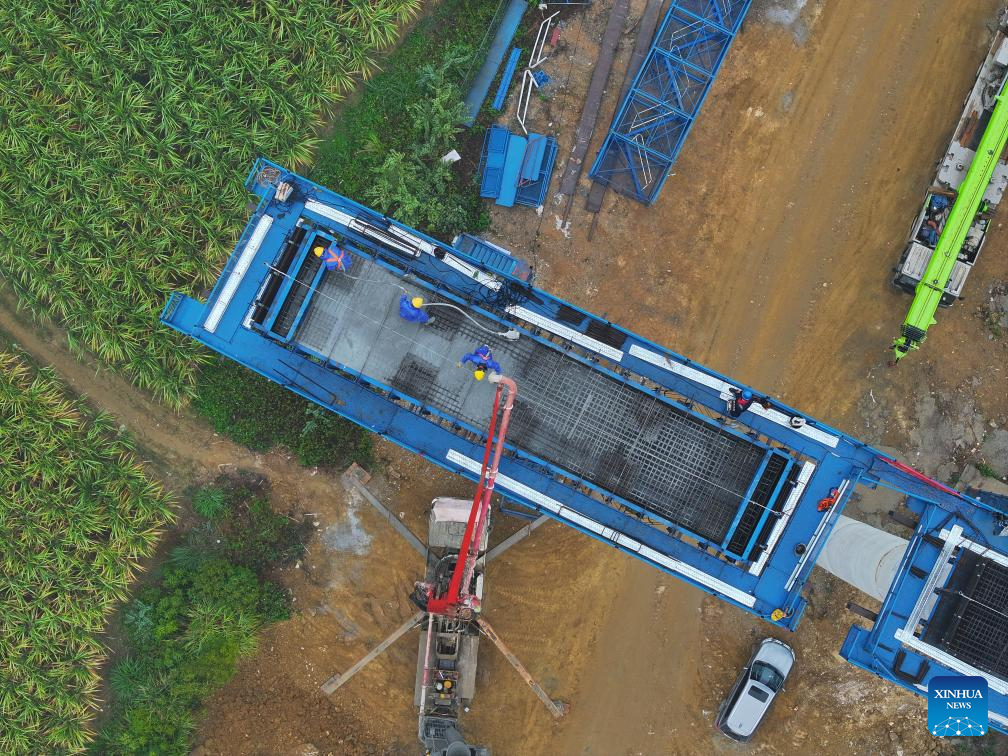People work at the construction site of an expressway linking Yufeng and Yizhou in south China's Guangxi Zhuang Autonomous Region, Dec. 10, 2024. (Xinhua/Huang Xiaobang)