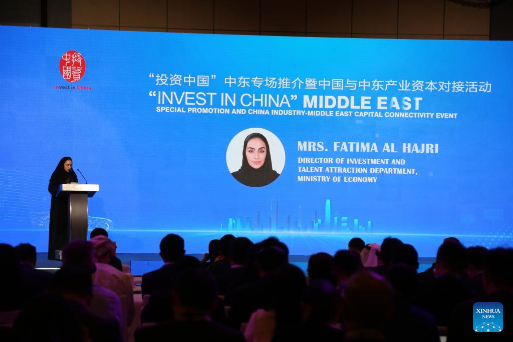 During the two-day event, around 40 Chinese companies specializing in new energy, advanced manufacturing, biopharmaceuticals, and information technology engaged with over 70 Middle Eastern sovereign wealth funds and investment institutions through discussions and live presentations. (Xinhua/Wen Xinnian)
