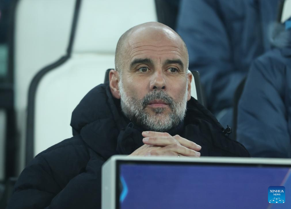 Manchester City's head coach Pep Guardiola looks on before the UEFA Champions League match between Juventus and Manchester City in Turin, Italy, Dec. 11, 2024. (Xinhua/Li Jing)