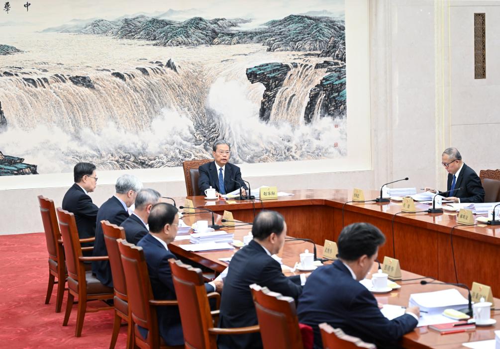 Zhao Leji, chairman of the National People's Congress (NPC) Standing Committee, presides over the 35th meeting of the Council of Chairpersons of the 14th NPC Standing Committee at the Great Hall of the People in Beijing, capital of China, Dec. 13, 2024. (Xinhua/Zhang Ling)