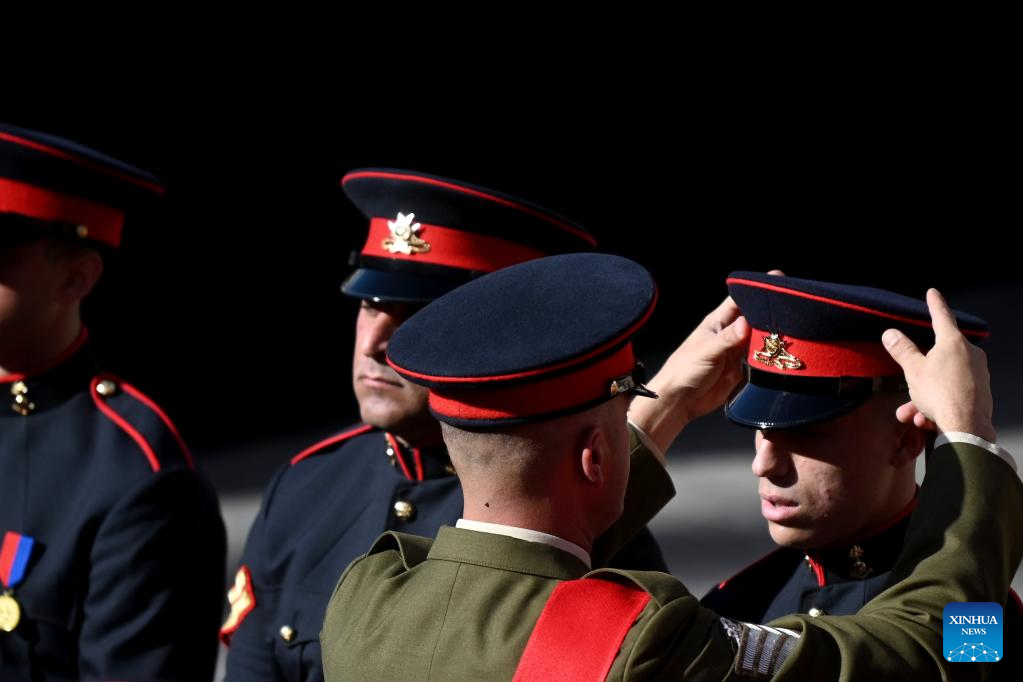 Soldiers of the Armed Forces of Malta attend a ceremonial parade in celebration of the 50th anniversary of the Republic of Malta in Valletta, Malta, on Dec. 13, 2024. (Photo by Jonathan Borg/Xinhua)