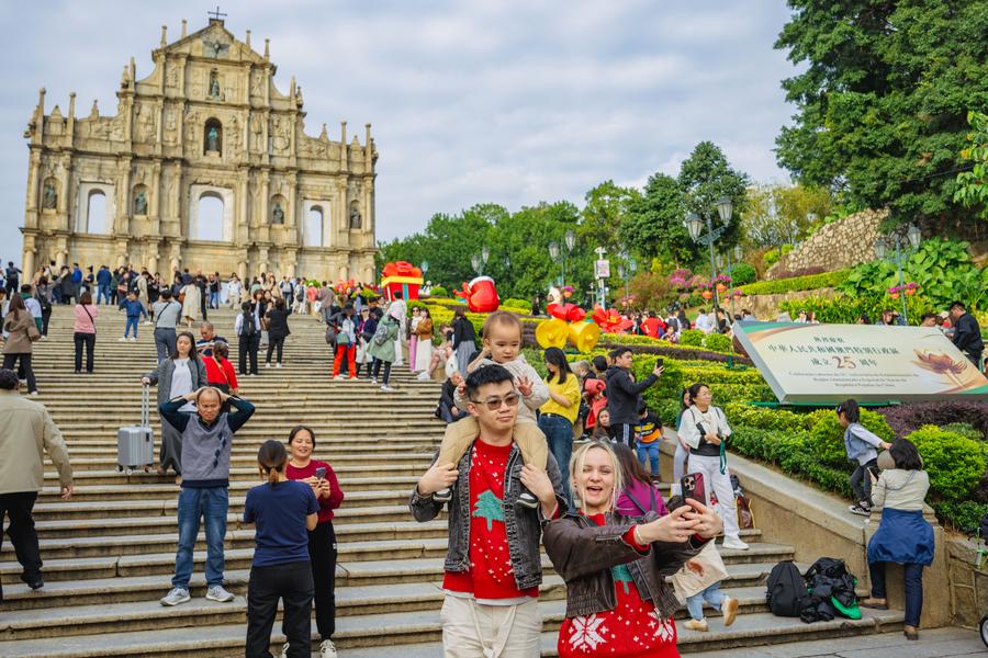 Tourists visit the historic center of Macao in south China's Macao, Dec. 12, 2024. (Xinhua/Zhu Wei)Tourists visit the historic center of Macao in south China's Macao, Dec. 12, 2024. (Xinhua/Zhu Wei)This photo shows the St. Lawrence's Church in south China's Macao, Dec. 12, 2024. (Xinhua/Zhu Wei)Tourists take selfies at the Monte Fort in south China's Macao, Dec. 12, 2024. (Xinhua/Zhu Wei)Tourists visit the Monte Fort in south China's Macao, Dec. 12, 2024. (Xinhua/Zhu Wei)Tourists visit the Guia Fortress in south China's Macao, Dec. 13, 2024. (Xinhua/Zhu Wei)Tourists sit on the steps of Dom Pedro V Theatre in south China's Macao, Dec. 12, 2024. (Xinhua/Zhu Wei)Tourists visit the Lilau Square in south China's Macao, Dec. 12, 2024. (Xinhua/Zhu Wei)Tourists visit the Senado Square in south China's Macao, Dec. 12, 2024. (Xinhua/Zhu Wei)Tourists visit the A-Ma Temple in south China's Macao, Dec. 13, 2024. (Xinhua/Zhu Wei)This photo shows the Sir Robert Ho Tung Library in south China's Macao, Dec. 12, 2024. (Xinhua/Zhu Wei)Tourists visit the Mandarin's House in south China's Macao, Dec. 12, 2024. (Xinhua/Zhu Wei)■