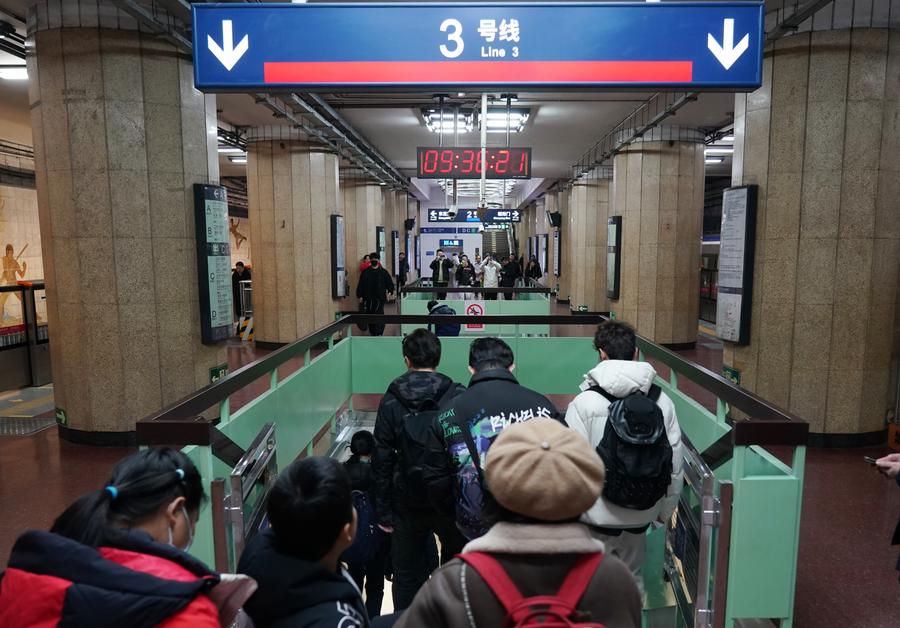 This photo taken on Dec. 15, 2024 shows a view of the Chaoyang Station Transportation hub in Beijing, capital of China. (Xinhua/Zhang Chenlin)Passengers transfer to Beijing Subway Line 3 at Dongsi Shitiao Station in Beijing, capital of China, Dec. 15, 2024. (Xinhua/Zhang Chenlin)A train of Beijing Subway Line 12 arrives at Anhua Qiao Station in Beijing, capital of China, Dec. 15, 2024. (Xinhua/Zhang Chenlin)This photo taken on Dec. 15, 2024 shows a view of the Workers' Stadium Station of Beijing Subway in Beijing, capital of China. (Xinhua/Zhang Chenlin)This photo taken on Dec. 15, 2024 shows a view of the Workers' Stadium Station of Beijing Subway in Beijing, capital of China. (Xinhua/Zhang Chenlin)This photo taken on Dec. 15, 2024 shows a view of the Chaoyang Station Transportation hub in Beijing, capital of China. (Xinhua/Zhang Chenlin)Passengers board a train of Beijing Subway Changping Line at Jimen Qiao Station in Beijing, capital of China, Dec. 15, 2024. (Xinhua/Zhang Chenlin)Passengers take a train of Beijing Subway Line 3 in Beijing, capital of China, Dec. 15, 2024. (Xinhua/Zhang Chenlin)■