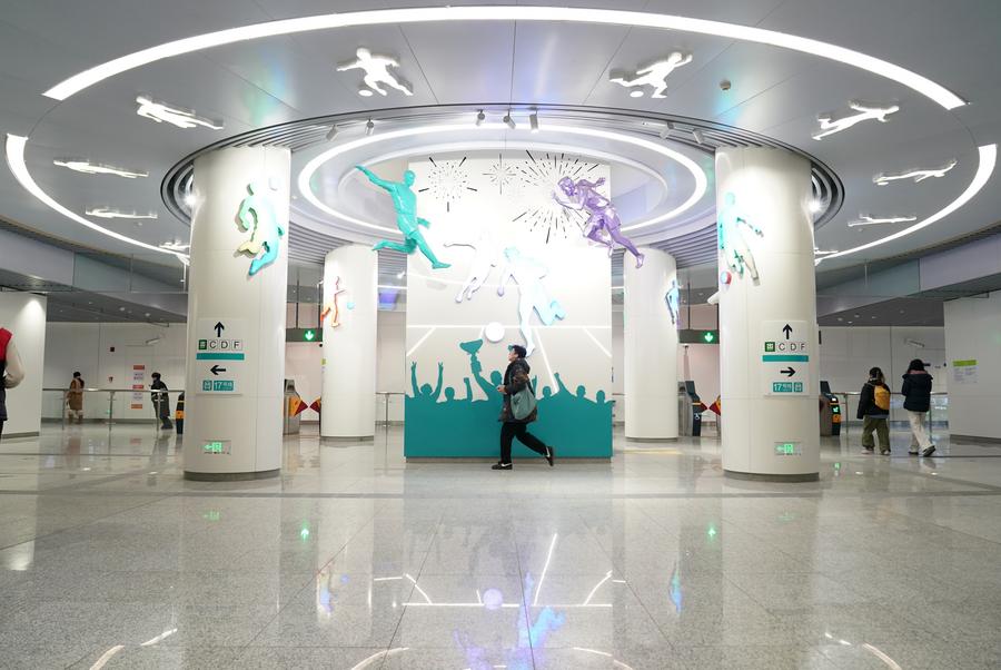 This photo taken on Dec. 15, 2024 shows an interior view of the Anhua Qiao Station of Beijing Subway Line 12 in Beijing, capital of China. (Xinhua/Zhang Chenlin)