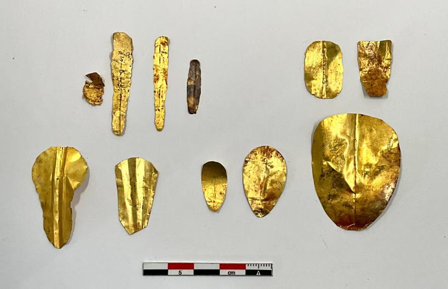 It is the first time to find human remains in Al-Bahnasa, including 13 golden tongues and nails of mummies from the Ptolemaic era, it noted.