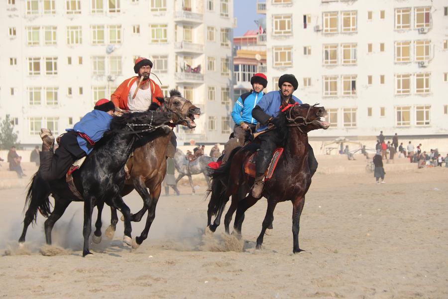 KABUL, Dec. 15 (Xinhua) -- Excitedly looking forward to the Buzkashi game and praying for his team to win the competition, a horse rider who introduced himself as Pahlawan described Buzkashi as a cherished traditional game, saying Afghans have been playing it throughout history.