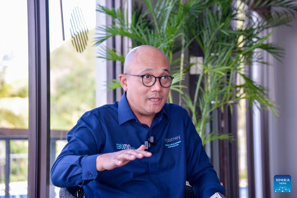 Ari Respati, CEO of PT Pengembangan Pariwisata Indonesia (ITDC), speaks during an interview with Xinhua in Lombok Island, West Nusa Tenggara, Indonesia, Dec. 3, 2024 . (Xinhua/Xu Qin)