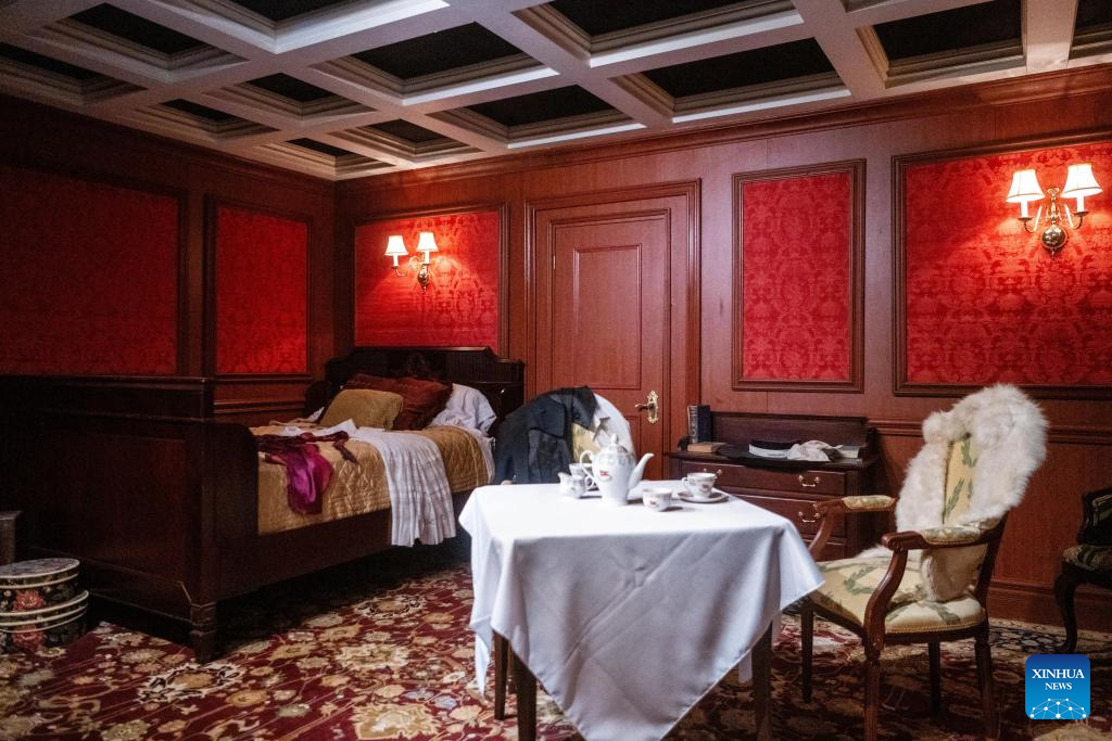 A first-class cabin replica is displayed at a Titanic artifact exhibition in Boston, Massachusetts, the United States, Dec. 13, 2024. The exhibition features more than 200 authentic artifacts recovered from the shipwreck. (Photo by Ziyu Julian Zhu/Xinhua)