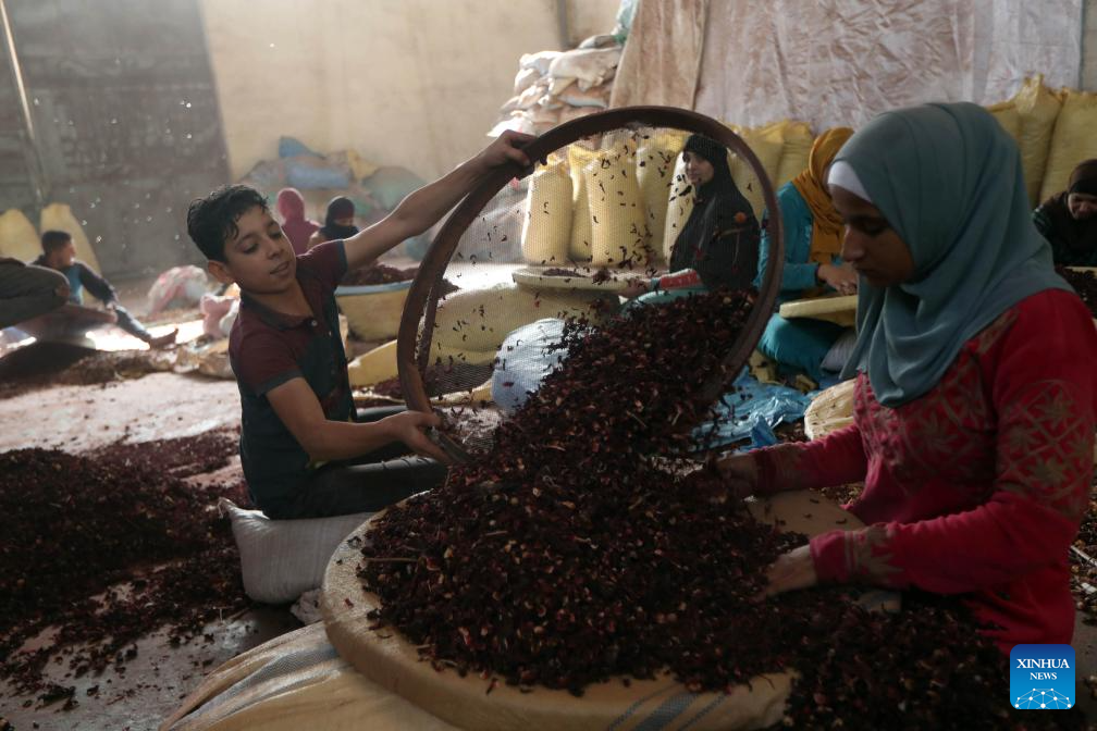 Workers process medicinal herbs at a company in Fayoum, Egypt, on Dec. 9, 2024. (Xinhua/Ahmed Gomaa)