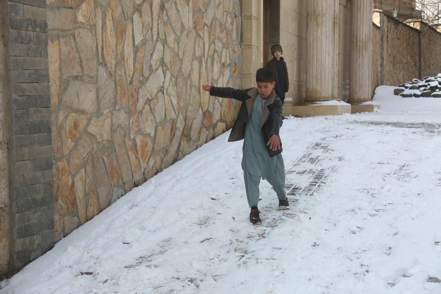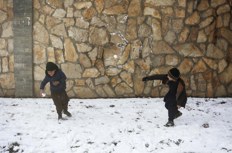 KABUL, Dec. 17 (Xinhua) -- The first snowfall in Afghanistan's capital Kabul this winter has relieved its polluted environment and brought joy to residents.