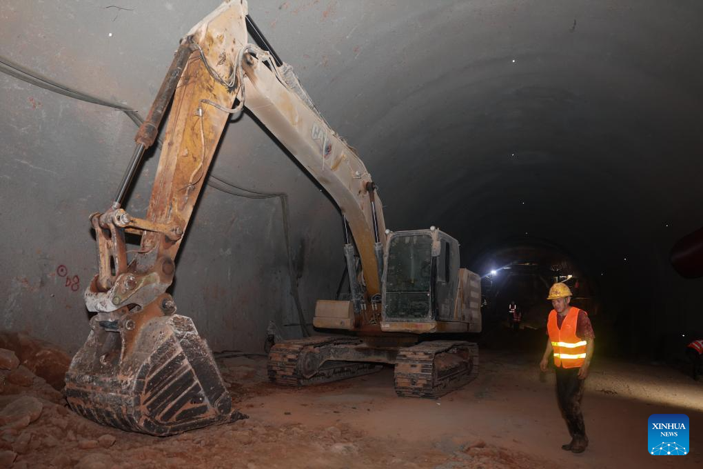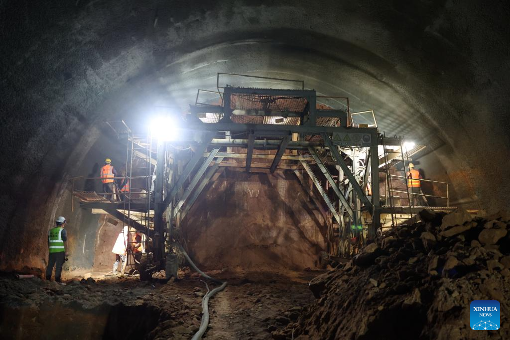 Staff members work at the construction site of the Kaole Tunnel of Lanzhou-Hezuo high-speed railway in Linxia Hui Autonomous Prefecture, northwest China's Gansu Province, Dec. 17, 2024.