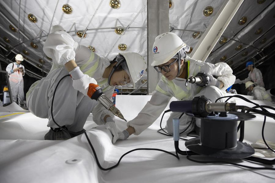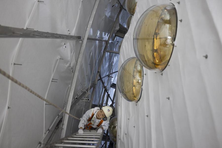 GUANGZHOU, Dec. 18 (Xinhua) -- The world's largest transparent spherical detector started filling with ultrapure water Wednesday, signifying that the construction of the neutrino research facility has reached its last critical stage.