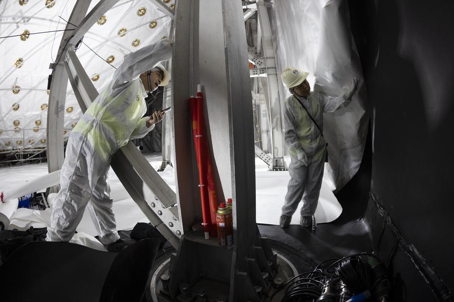 This photo taken on Dec. 17, 2024 shows the central detector of the Jiangmen Underground Neutrino Observatory (JUNO) in Jiangmen, south China's Guangdong Province. (Xinhua/Jin Liwang)