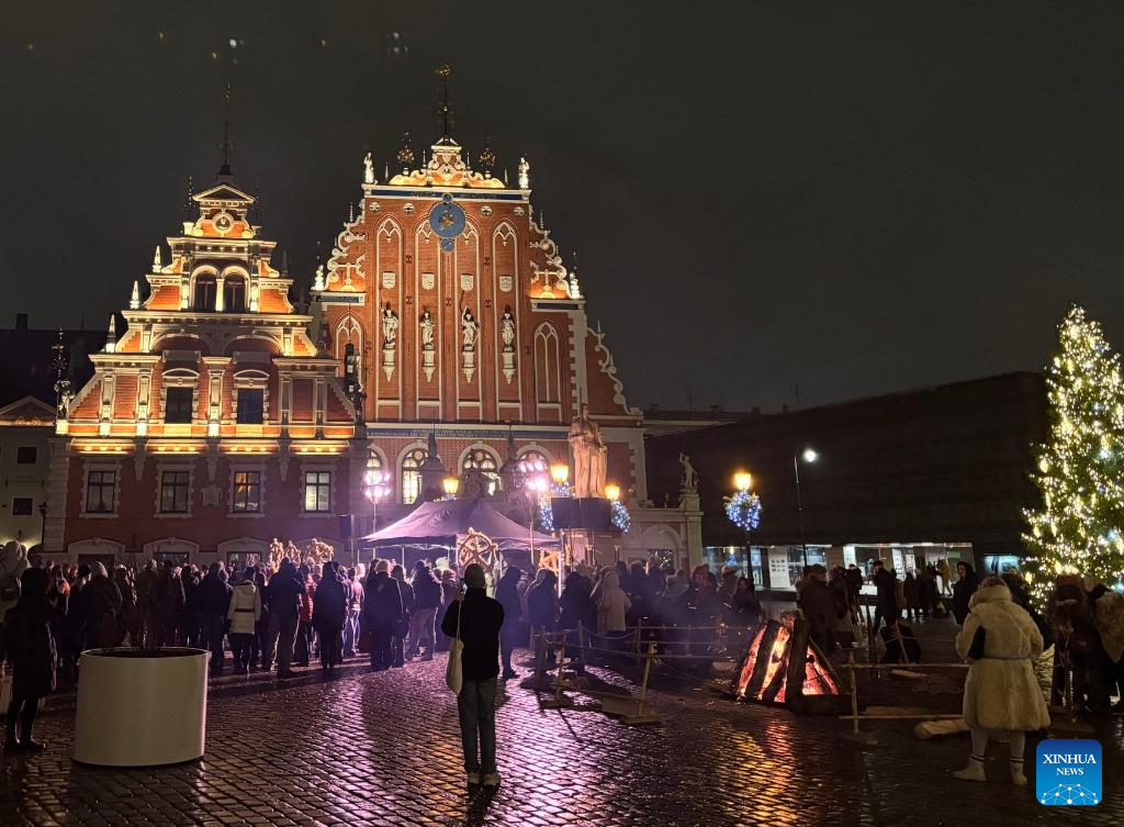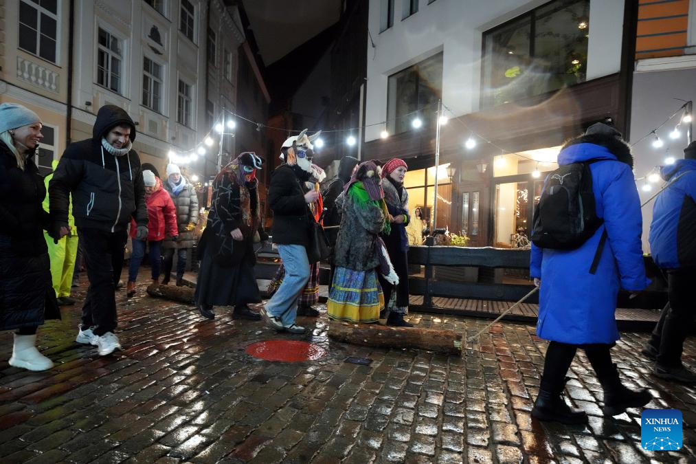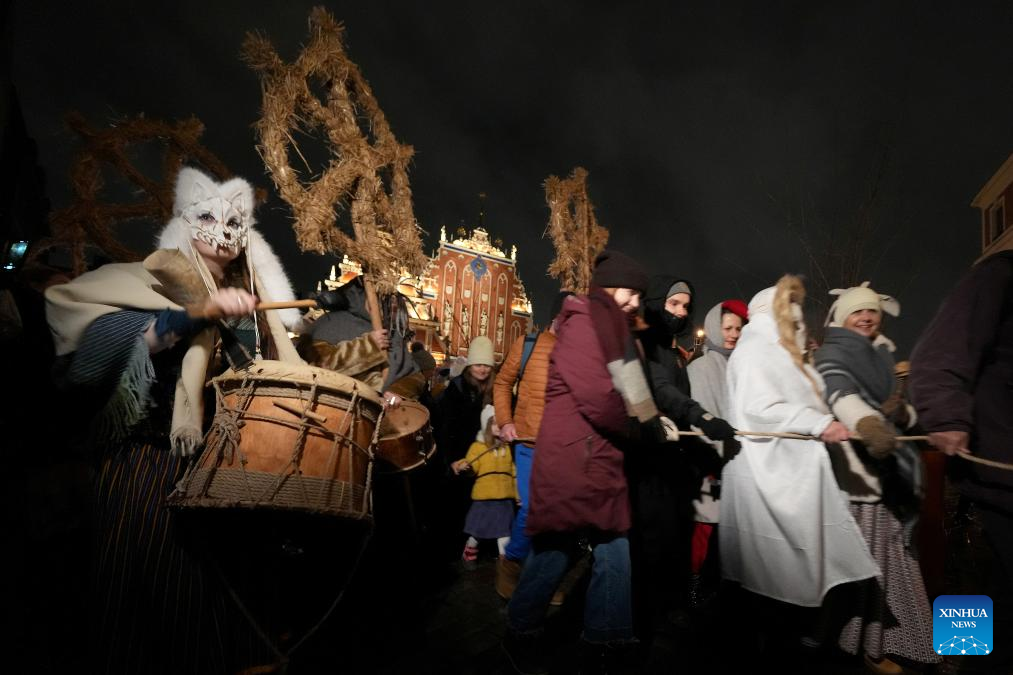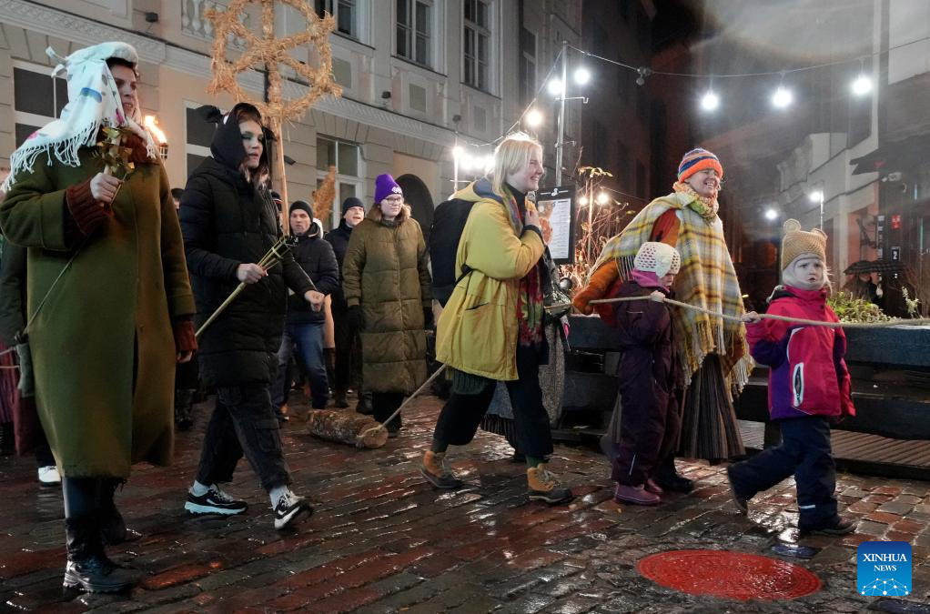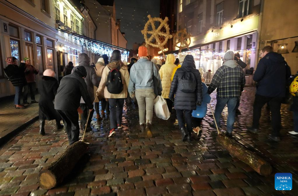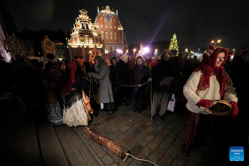The traditional block-pulling event took place here on Thursday, which symbolically removes the old and gives way to the new year. (Photo by Edijs Palens/Xinhua)