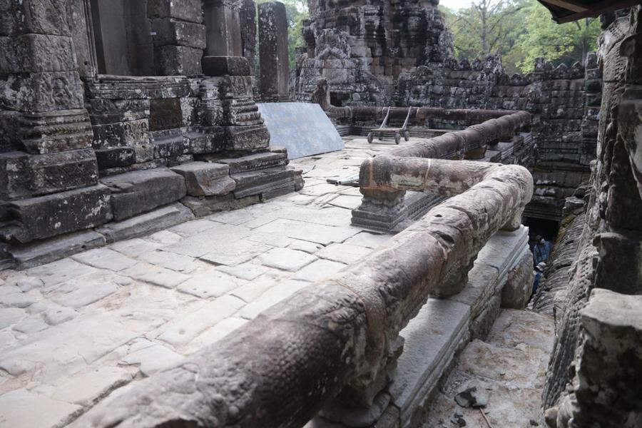 PHNOM PENH, Dec. 20 (Xinhua) -- Restoration work on the third terrace at the southwest corner of Bayon Temple in Cambodia's Angkor Archaeological Park has been completed successfully, the APSARA National Authority said in a news release on Thursday.