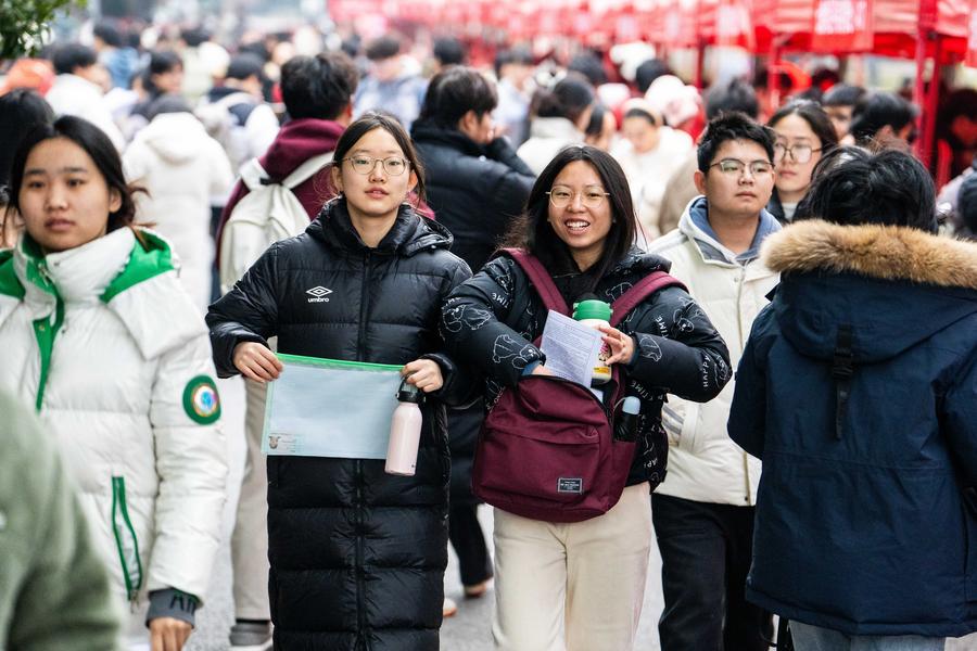 Test-takers enter an examination site for the 2025 postgraduate entrance exam in Changsha, central China's Hunan Province, Dec. 21, 2024. About 3.88 million Chinese have signed up for the 2025 national exam for postgraduate enrolment scheduled from Dec. 21 to 22. (Xinhua/Chen Sihan)This photo shows the main hall of the Qingcheng Palace complex in Beijing, capital of China, Dec. 21, 2024. The Qingcheng Palace complex, a royal sacrificial venue along the historic central axis of Beijing, opened to the public after restoration work on Saturday. Built in the Ming Dynasty (1368-1644), the palace is located inside the Altar of the God of Agriculture, also referred to as the Xiannongtan Temple. The palace was formerly known as Zhaigong, which literally translates to the fasting palace. It was a place where the emperors abstained from heavy meals and meditated before worship. It was renamed as Qingcheng Palace in the Qing Dynasty (1644-1911), becoming a place where the emperors held celebratory rituals after cultivation ceremonies while praying for a good harvest. Restoration work of the ancient buildings started in June last year, following the principle of "minimal intervention." (Xinhua/Chen Zhonghao)Staff members greet tourists at the Harbin Ice-Snow World in Harbin, northeast China's Heilongjiang Province, Dec. 21, 2024. The world's largest ice-and-snow theme park, the 26th edition of the Harbin Ice-Snow World, officially opened at 10 a.m. in Harbin, the capital of northeast China's Heilongjiang Province also known as the "city of ice." Themed "Dream of Winter, Love among Asia," the park was built using 300,000 cubic meters of ice and snow, incorporating elements inspired by the upcoming 2025 Harbin Asian Winter Games, which will open next February, right after China's Spring Festival holiday. It is also the first major international ice and snow event hosted by China since the 2022 Beijing Winter Olympics. With an overall planned area of 1 million square meters, up from last year's 800,000 square meters, the park is the largest in its 26-year history. (Xinhua/Wang Jianwei)People visit a lantern fair held at China Flower Expo Park in Yinchuan, northwest China's Ningxia Hui Autonomous Region, Dec. 20, 2024. (Xinhua/Wang Peng)Flags fly at half-mast at the German Bundestag in Berlin, Germany, Dec. 21, 2024. German Federal Minister of the Interior Nancy Faeser ordered Saturday morning that all flags at all federal buildings be flown at half-mast nationwide to mourn the victims of a tragic attack at a Christmas market in the German city of Magdeburg on Friday night, where a car rammed into a crowd, killing at least five people and injuring 200 others. (Xinhua/Liu Yang)Qatari flag is seen hoisted at the Qatari embassy in Damascus, Syria, Dec. 21, 2024. Qatar officially reopened its embassy in the Syrian capital Damascus on Saturday, raising its national flag over the building for the first time in 13 years. (Photo by Monsef Memari/Xinhua)AC Milan's Samuel Chukwueze (L) vies with Hellas Verona's Lorenzo Montipo during a Serie A soccer match between Hellas Verona and AC Milan in Verona, Italy, Dec. 20, 2024. (Photo by Alberto Lingria/Xinhua)■