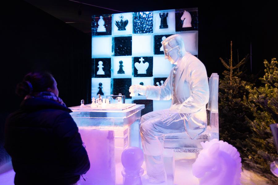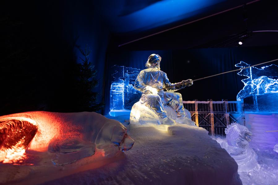 An ice sculpture is pictured during a press preview of the Art Below Zero exhibition in Amsterdam, the Netherlands, Dec. 20, 2024.(Photo by Sylvia Lederer/Xinhua)Visitors view an ice sculpture during a press preview of the Art Below Zero exhibition in Amsterdam, the Netherlands, Dec. 20, 2024. (Photo by Sylvia Lederer/Xinhua)