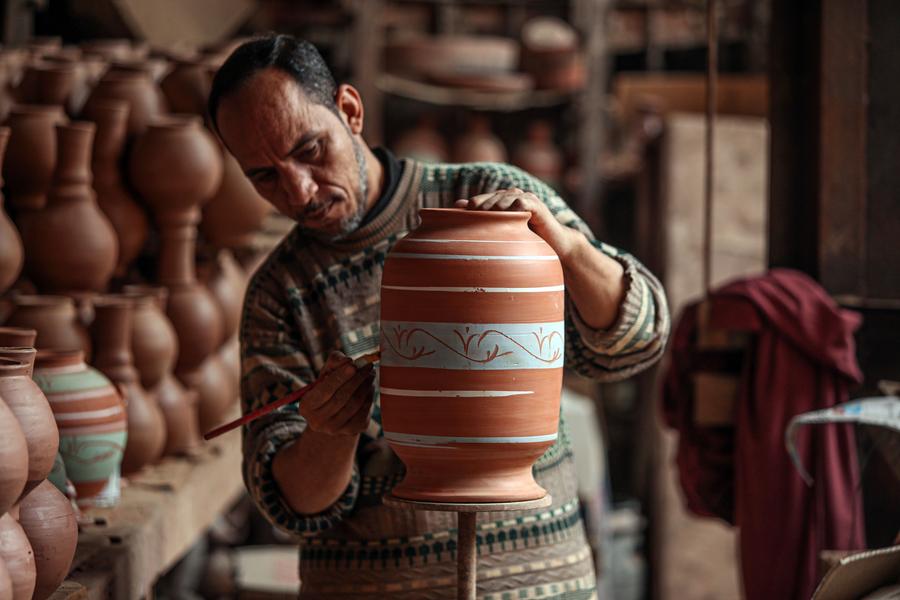 Ghoneim has adapted to modern changes in the industry to protect it from decline. Unlike other potters, he sources red clay from the southern Egyptian province of Aswan to create colorful, healthy porcelain cooking pots.