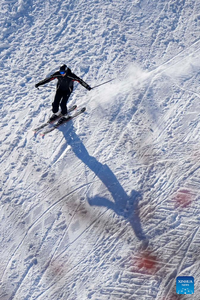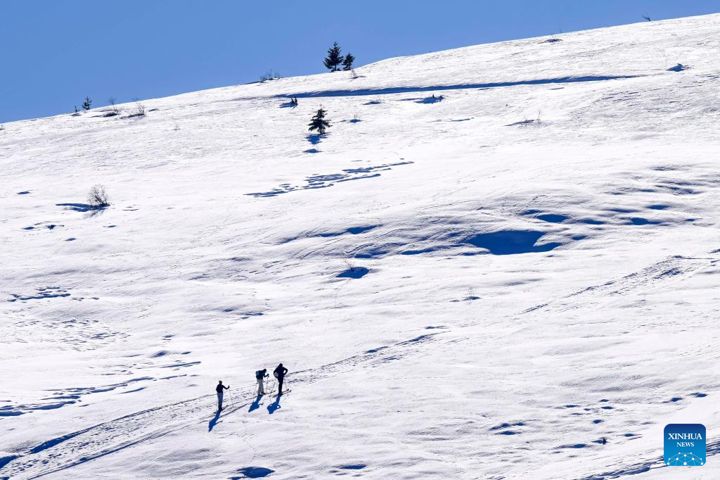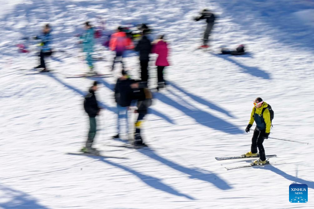 People ski at the Popova Sapka Ski Center, some 60 kilometers west of Skopje, North Macedonia, Dec. 22, 2024. (Photo by Tomislav Georgiev/Xinhua)