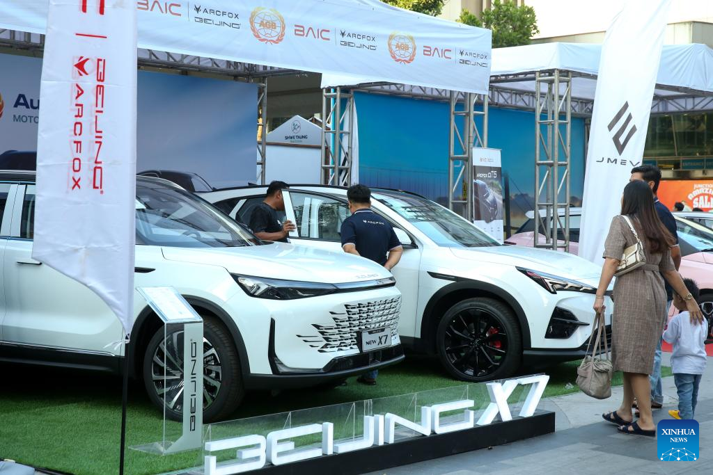 Visitors view Chinese-branded electric vehicles at a Christmas motor show in Yangon, Myanmar, Dec. 22, 2024. (Xinhua/Myo Kyaw Soe)