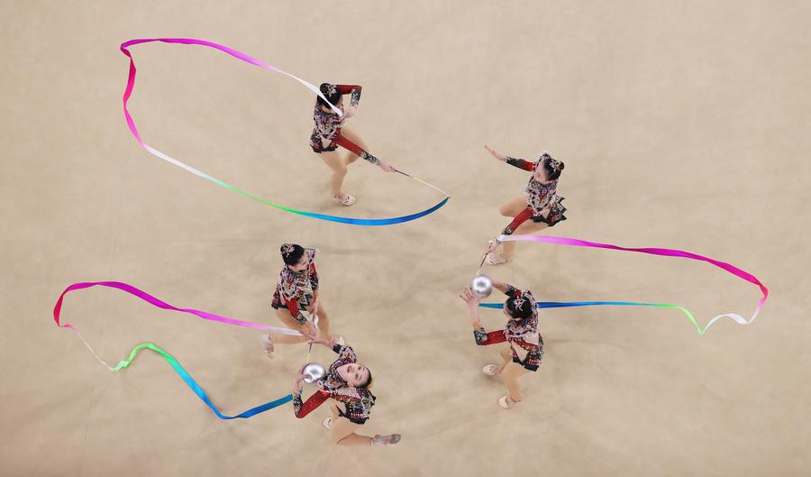 In the group all-around artistic gymnastics final, Chinese gymnasts donned attire embellished with traditional cultural motifs, their routines themed around the Han and Tang dynasties, highlighting the distinctive allure of Chinese culture.
