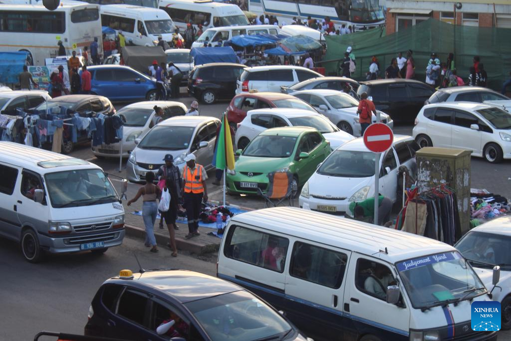 People and vehicles are seen at the Francistown Bus Rank in Francistown, Botswana, on Dec. 24, 2024. Bus terminals in Botswana's two major cities of Gaborone and Francistown were on Tuesday bustling with people heading home for the Christmas and New Year holidays. (Photo by Shingirai Madondo/Xinhua)
