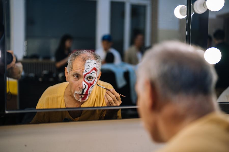 Seated before the backstage mirror at Beijing's Liyuan Theater, an old Peking Opera venue especially popular among foreign travelers, Pourazar deftly applies white, red and black paint to his face, transforming it into the vibrant likeness of the mischievous Monkey King.