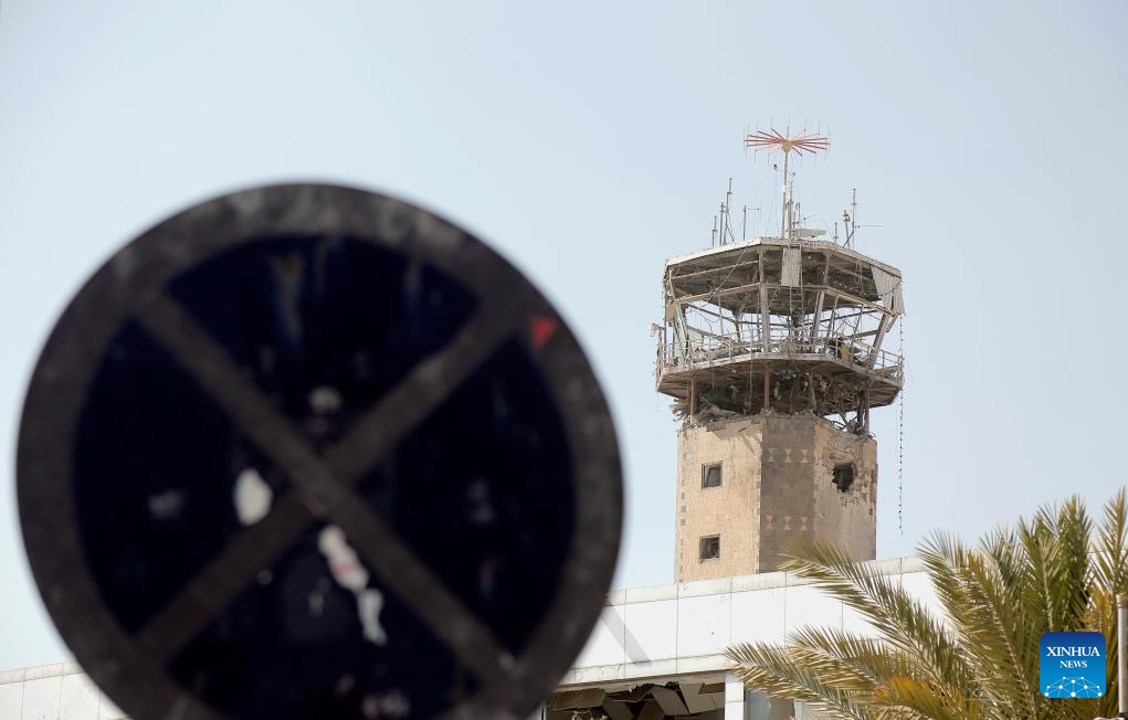 The Israeli warplanes on Thursday hit Houthi-used infrastructures in the Sanaa International Airport, and the Hezyaz and Ras Kanatib power stations, both located in Houthi-controlled areas, as well as the ports of Hodeidah, Salif, and Ras Kanatib on the western coast, the military said in a statement. (Photo by Mohammed Mohammed/Xinhua)
