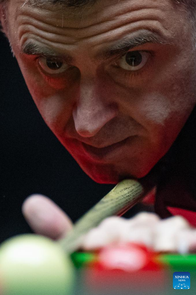 Ronnie O'Sullivan of England plays a shot during the match against Si Jiahui of China at 2024 Macao Snooker Masters in south China's Macao, Dec. 27, 2024. (Xinhua/Cheong Kam Ka)