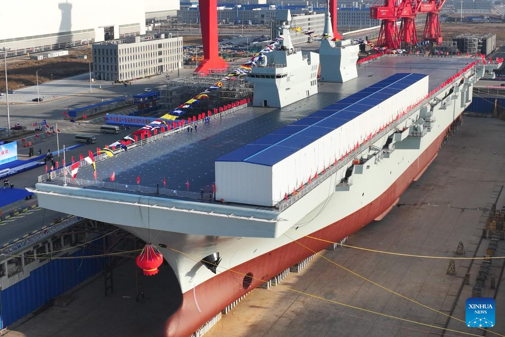Following its launch, the ship will undergo a series of planned tests, including equipment commissioning, mooring tests, and sea trials. (Photo by Pu Haiyang/Xinhua)