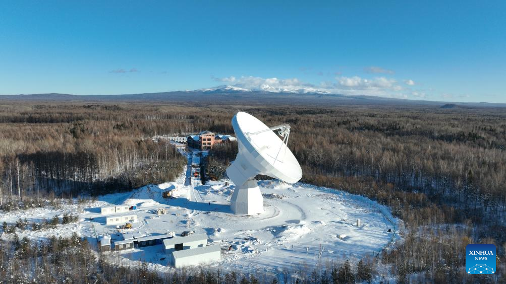 This photo provided by the Shanghai Astronomical Observatory of the Chinese Academy of Sciences shows a radio telescope with 40-meter-diameter antenna in Changbai Mountain area in northeast China's Jilin Province on Dec. 23, 2024. Two radio telescopes with 40-meter-diameter antennas, one located in northeast and the other in southwest China, were put into use on Friday. These telescopes will aid in exploring deep space and unravelling cosmic mysteries. (Xinhua)