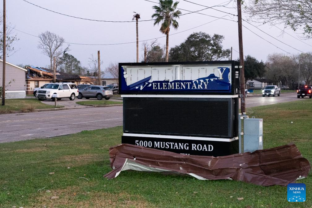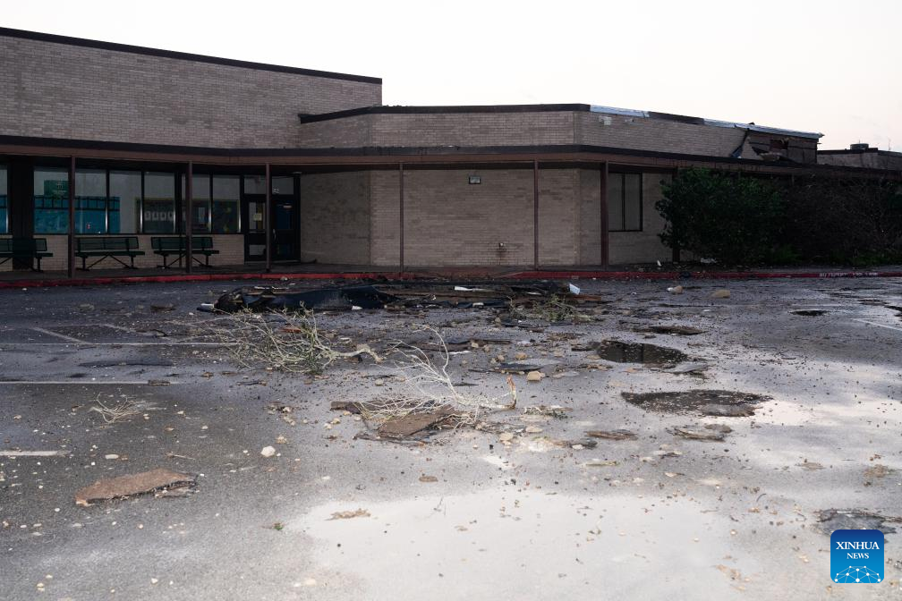 This photo shows storm-damaged facilities of Walt Disney Elementary School in Alvin, Texas, the United States, Dec. 28, 2024. At least one person died after multiple tornadoes and severe storms ripped through the Greater Houston metropolitan area in Texas and several other southern U.S. states on Saturday afternoon, authorities said.(Photo by Chen Chen/Xinhua)
