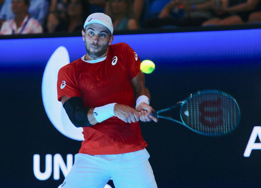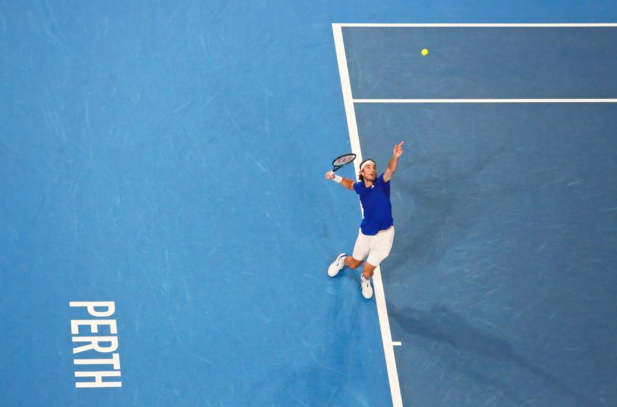 SYDNEY, Dec. 28 (Xinhua) -- Two-time Grand Slam finalist Stefanos Tsitsipas started his season with a gritty victory on Saturday as third-seeded Greece overcame Spain at the United Cup.