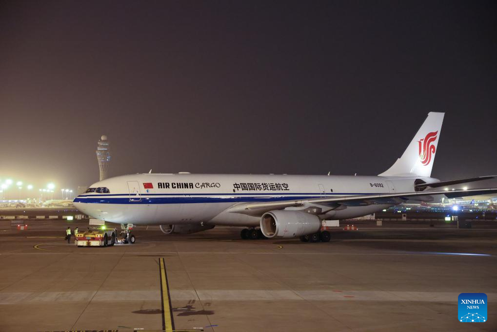 A flight carrying emergency relief supplies prepares to depart from Shenzhen Baoan International Airport in Shenzhen, south China's Guangdong Province, Jan. 1, 2025.(Xinhua/Liang Xu)