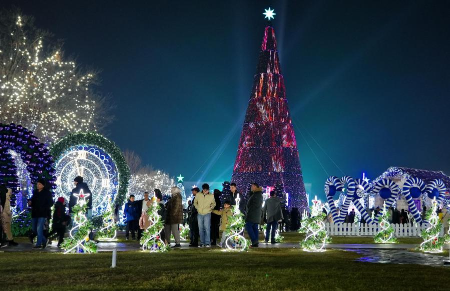 TASHKENT, Jan. 1 (Xinhua) -- On New Year's Eve, the streets of Tashkent, Uzbekistan's capital, come alive with festive lights and vibrant decorations. From lively public squares to cozy family gatherings, the city embraces the holiday spirit with traditions and feasts reflecting the warmth of Uzbek culture.