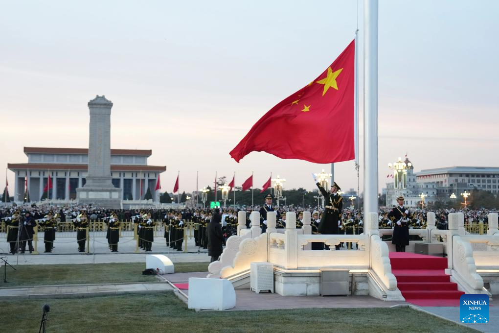 A grand national flag-raising ceremony is held at the Tian'anmen Square in Beijing, capital of China, Jan. 1, 2025. (Xinhua/Ju Huanzong)