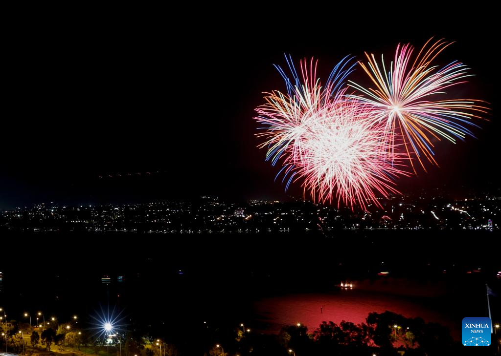 Fireworks illuminate the sky in celebration of the New Year in Perth, Australia, Jan. 1, 2025. (Xinhua/Ma Ping)