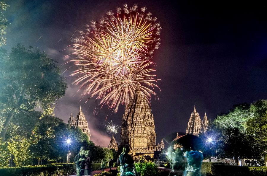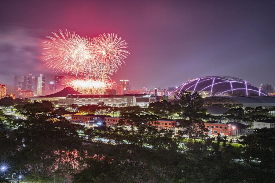 Fireworks explode in celebration of the new year at Prambanan Temple in Yogyakarta, Indonesia, on Jan. 1, 2025. (Photo by Agung Supriyantovri/Xinhua)A drone light show is pictured in celebration of the new year in Colombo, Sri Lanka, on Dec. 31, 2024. (Photo by Ajith Perera/Xinhua)Fireworks explode in celebration of the new year in Bangkok, Thailand, on Jan. 1, 2025. (Xinhua/Rachen Sageamsak)Fireworks explode over Kallang Basin to celebrate the New Year in Singapore, on Jan. 1, 2025. (Photo by Then Chih Wey/Xinhua)Fireworks explode to celebrate the New Year over Quezon City Memorial Circle in Quezon City, the Philippines, on Dec. 31, 2024. (Xinhua/Rouelle Umali)People take part in a New Year parade in Phnom Penh, Cambodia on Dec. 31, 2024. (Photo by Sovannara/Xinhua) ■