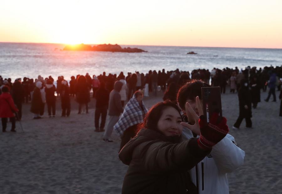People enjoy the scenery at sunrise on the beach in Gyeongju, South Korea, Jan. 1, 2025. (Xinhua/Yao Qilin)People write the number 2025 on a beach in Karachi, Pakistan, Dec. 31, 2024. (Str/Xinhua)Fireworks explode in the sky in celebration of the New Year in Wellington, New Zealand, Dec. 31, 2024. (Photo by Meng Tao/Xinhua)People watch fireworks in celebration of the New Year in Karachi, Pakistan, Jan. 1, 2025. (Str/Xinhua)Fireworks explode over the Patuxay monument in Vientiane, Laos, Jan. 1, 2025. (Photo by Kaikeo Saiyasane/Xinhua)People ride a modified rickshaw with colorful lights on the first day of the New Year holiday in Yogyakarta, Indonesia, Jan. 1, 2025. (Photo by Agung Supriyanto/Xinhua)People ride a modified rickshaw with colorful lights on the first day of the New Year holiday in Yogyakarta, Indonesia, Jan. 1, 2025. (Photo by Agung Supriyanto/Xinhua)■