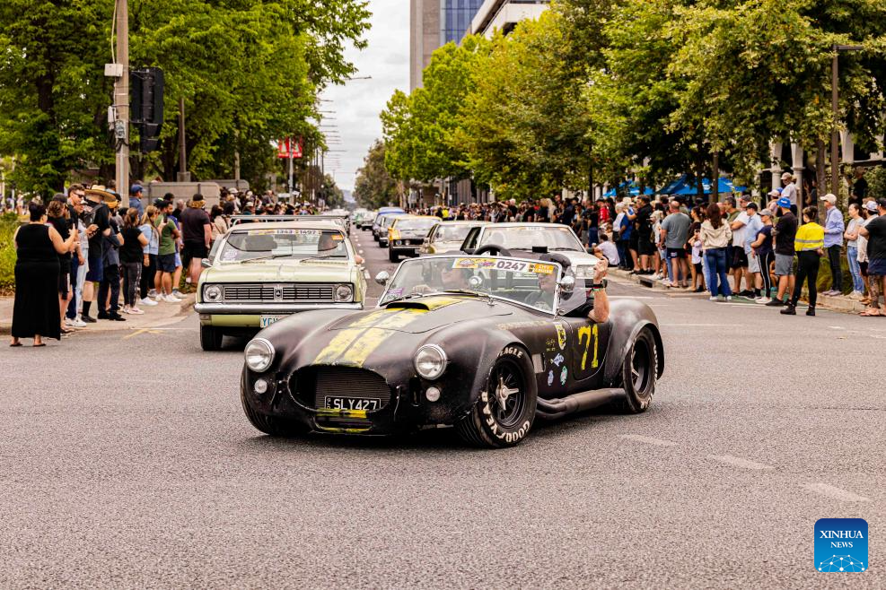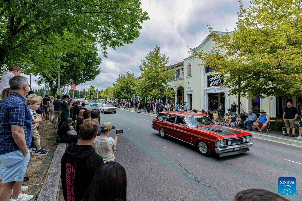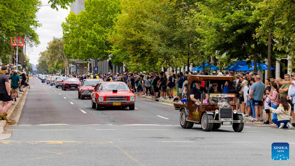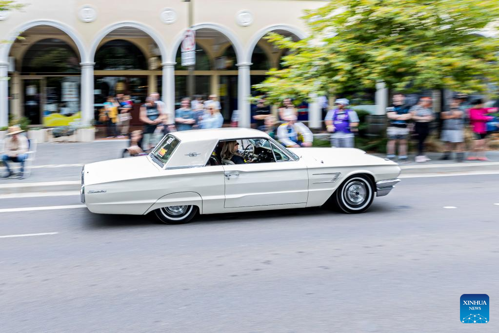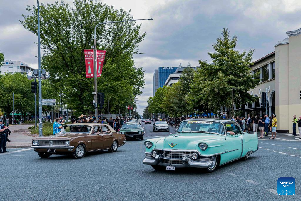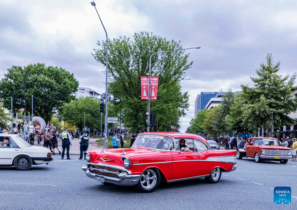 Participants' cars attend the city cruise during the Summernats car festival in Canberra, Australia, Jan. 2, 2025. (Photo by Chu Chen/Xinhua)