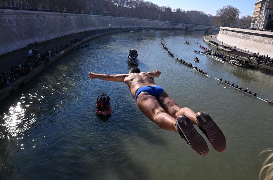 This photo shows the sunrise scenery at the Yellow Crane Tower in Wuhan, central China's Hubei Province, Jan. 1, 2025. (Xinhua/Hu Jingwen)Visitors watch an exhibition themed on the cultural relics of the Qin Dynasty (221 BC-207 BC) and Han Dynasty (202 BC-AD 220) at the Tianjin Museum in Tianjin, north China, Jan. 1, 2025. (Xinhua/Sun Fanyue)This photo taken on Jan. 1, 2025 shows a panda at Locajoy animal theme park in Yongchuan district of southwest China's Chongqing Municipality. On the first day of the New Year, the park in Chongqing held a celebration for its four giant pandas, marking their first anniversary at the park. (Xinhua/Wang Quanchao)People visit the Yuyuan Garden Lantern Festival at Yuyuan Garden Mall in east China's Shanghai, Jan. 1, 2025. With the Chinese Lunar New Year just around the corner, Shanghai's Yuyuan Garden has again donned a festive look with hundreds of delicate, illuminated lanterns. The Yuyuan Garden Lantern Festival, which opened here Wednesday, is a key cultural highlight in Shanghai during the Spring Festival celebration. (Xinhua/Liu Ying)Emergency relief supplies with "China Aid" marks are transported onto a plane at Shenzhen Baoan International Airport in Shenzhen, south China's Guangdong Province, Jan. 1, 2025. A shipment of emergency relief supplies departed Wednesday evening from the southern Chinese city of Shenzhen to Port Vila, the capital of Vanuatu, to support earthquake relief efforts in the Pacific island country. A 7.3-magnitude earthquake struck Port Vila on Dec. 17, causing casualties and significant damage. (Xinhua/Liang Xu)People celebrate the new year in Mexico City, Mexico, Jan. 1, 2025. (Xinhua/Francisco Canedo)Fireworks explode in front of the London Eye in London, Britain, Jan. 1, 2025. (Xinhua/Li Ying)Participants rush into Lake Ontario during the Toronto Polar Bear Dip event in Toronto, Canada, on Jan. 1, 2025. Hundreds of people braved the chilly waters here on Wednesday to celebrate the first day of 2025 and raise funds for charity. (Photo by Zou Zheng/Xinhua)A man dives into the Tiber River from the Cavour bridge as part of traditional New Year celebrations in Rome, Italy, Jan. 1, 2025. (Photo by Alberto Lingria/Xinhua)People view fireworks and a light show in celebration of the New Year in Dubai, the United Arab Emirates (UAE), Dec. 31, 2024. (Xinhua/Wen Xinnian)Confetti flies around during a New Year celebration at Times Square in New York, the United States, Jan. 1, 2025. (Xinhua/Li Rui)Fireworks explode over the Arc de Triomphe in celebration of the New Year on the Champs-Elysees Avenue in Paris, France, Jan. 1, 2025. (Xinhua/Gao Jing)■