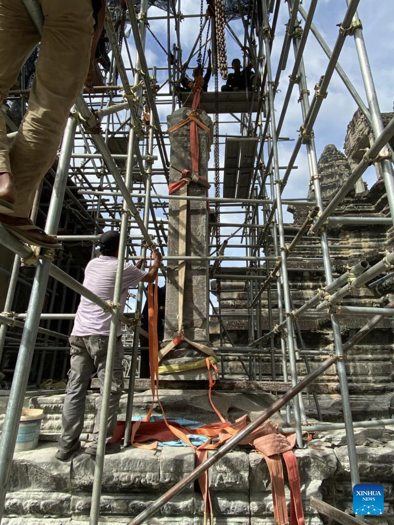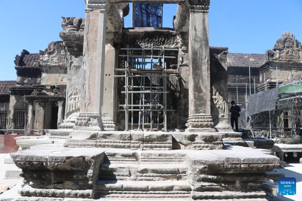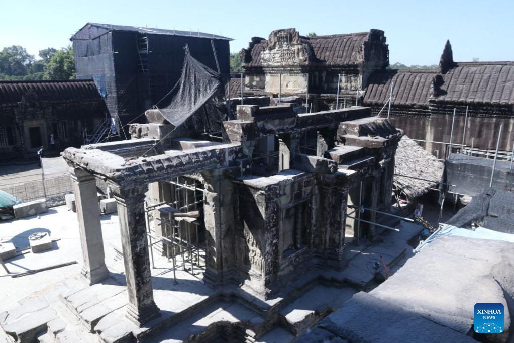 PHNOM PENH, Jan. 3 (Xinhua) -- Restoration work on the nearly 1,000-year-old southern library of the Angkor Wat in Cambodia's Angkor Archaeological Park has been completed successfully, the APSARA National Authority said in a news release on Friday.