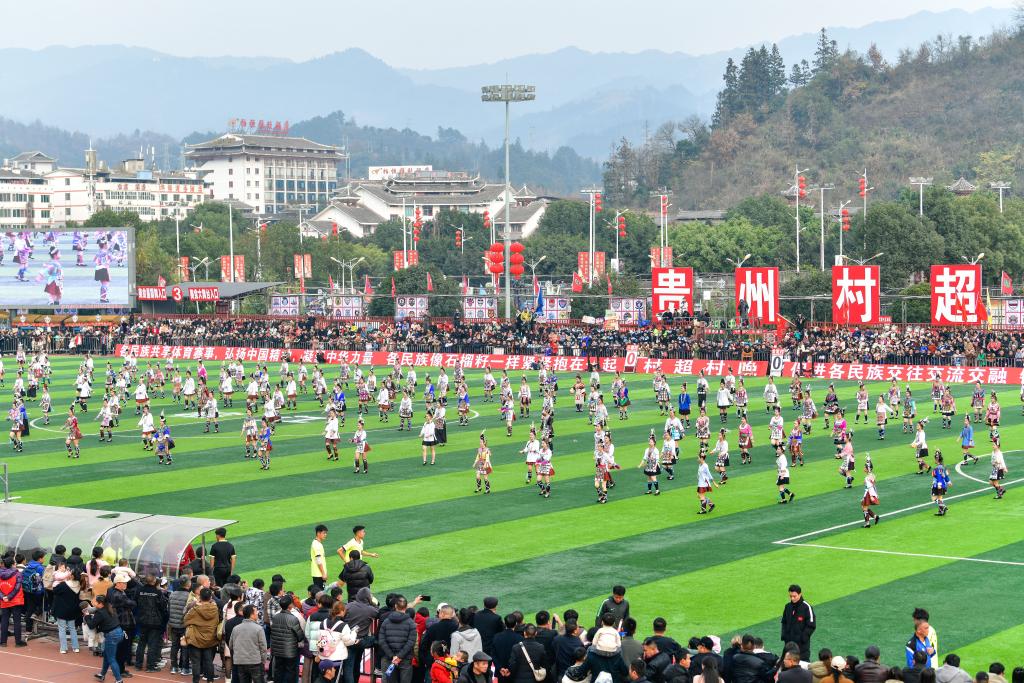 The dancers perform at the halftime during the opening game at the Village Super League 2025 in Rongjiang County of southwest China's Guizhou Province, Jan. 4, 2025. (Xinhua/Yang Wenbin)An aerial drone photo taken on Jan. 4, 2025 shows the opening game at the Village Super League 2025 in Rongjiang County of southwest China's Guizhou Province. (Xinhua/Yang Wenbin)The dancers perform at the halftime during the opening game at the Village Super League 2025 in Rongjiang County of southwest China's Guizhou Province, Jan. 4, 2025. (Xinhua/Yang Wenbin)People cheer for the teams at the Village Super League 2025 in Rongjiang County of southwest China's Guizhou Province, Jan. 4, 2025. (Xinhua/Yang Wenbin)An aerial drone photo taken on Jan. 4, 2025 shows the opening game at the Village Super League 2025 in Rongjiang County of southwest China's Guizhou Province. (Xinhua/Yang Wenbin)Players of Xiaorui Village and Panxue Village compete during the opening game at the Village Super League 2025 in Rongjiang County of southwest China's Guizhou Province, Jan. 4, 2025. (Xinhua/Yang Wenbin)Players of Xiaorui Village and Panxue Village compete during the opening game at the Village Super League 2025 in Rongjiang County of southwest China's Guizhou Province, Jan. 4, 2025. (Xinhua/Yang Wenbin)People cheer for the teams at the Village Super League 2025 in Rongjiang County of southwest China's Guizhou Province, Jan. 4, 2025. (Xinhua/Yang Wenbin)Cheering squads parade during the opening ceremony of the Village Super League 2025 in Rongjiang County of southwest China's Guizhou Province, Jan. 4, 2025. (Xinhua/Yang Wenbin)An aerial drone photo taken on Jan. 4, 2025 shows the opening ceremony of the Village Super League 2025 in Rongjiang County of southwest China's Guizhou Province. (Xinhua/Yang Wenbin)An aerial drone photo taken on Jan. 4, 2025 shows the opening ceremony of the Village Super League 2025 in Rongjiang County of southwest China's Guizhou Province. (Xinhua/Yang Wenbin)An aerial drone photo taken on Jan. 4, 2025 shows the opening ceremony of the Village Super League 2025 in Rongjiang County of southwest China's Guizhou Province. (Xinhua/Yang Wenbin)