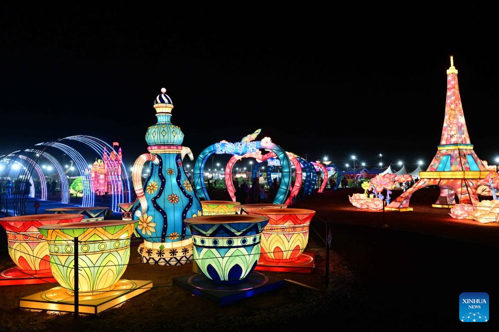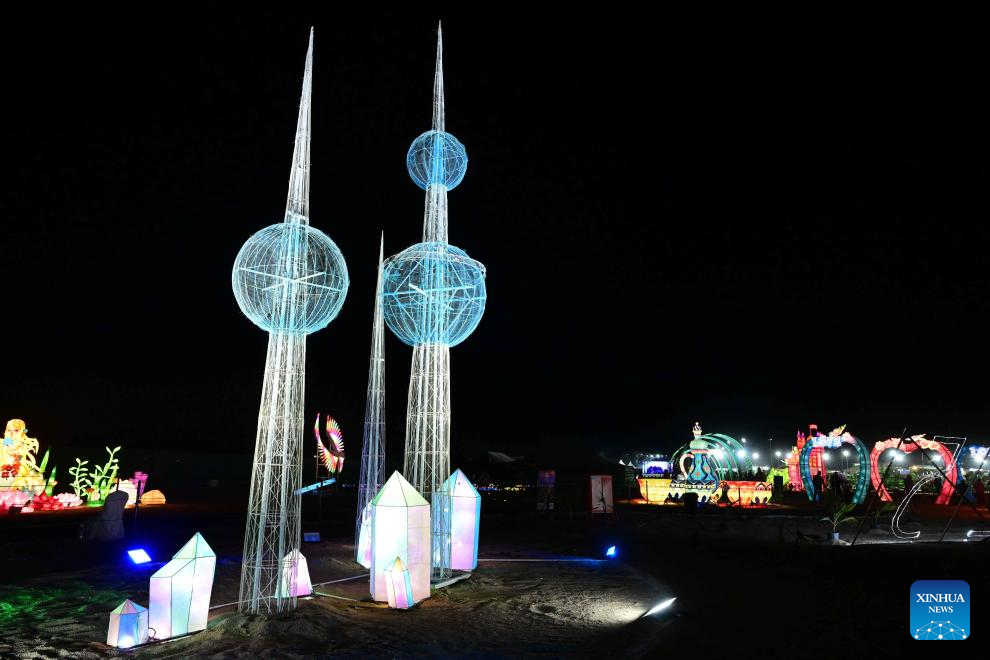 Luminous installations from a Chinese company are displayed during a light festival in Jahra Governorate, Kuwait, Jan. 3, 2025. The festival will last till Feb. 28. (Photo by Asad/Xinhua)