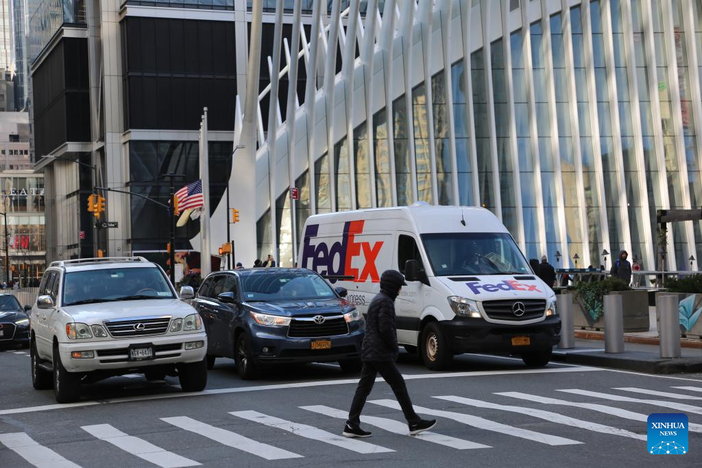 Pedestrians cross an intersection in Lower Manhattan, New York City, the United States, on Jan. 3, 2025. A U.S. federal judge in New Jersey on Friday dismissed a last-minute attempt to block New York City's congestion pricing plan, allowing it to take effect Sunday.(Xinhua/Liu Yanan)